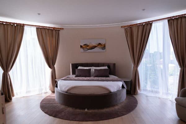 Hotel Palace Ukraine – целый комплекс, который находится в центре города, недалеко от улицы Советской. Отель состоит из 25 номеров, но они удовлетворят запросы даже наиболее требовательных гостей. Даже в самых простых стандартных номерах комфортность повышенного уровня, не говоря уже о люксе и VIP классе. Также имеются роскошные апартаменты. В каждом номере всё тонко продумано – от различных аксессуаров до мебели, сделанной из натуральной древесины. Телевизор, кондиционер, телефонная связь, Wi-Fi – это тоже присутствует. Имеется даже мини-бар. Автомобиль можно оставить на платной парковке, также можно воспользоваться услугами химчистки и прачечной. Если потребуется проведение конференции, в гостинице есть два специальных зала вместимостью 120 и 40 человек. Если нет желания себе готовить, можно посетить ресторан, который находится при отеле. Но завтрак уже включен в стоимость проживания. Недалеко от гостиницы находится автовокзал – на расстоянии 5,5 км и железнодорожный вокзал – 8,5 км.